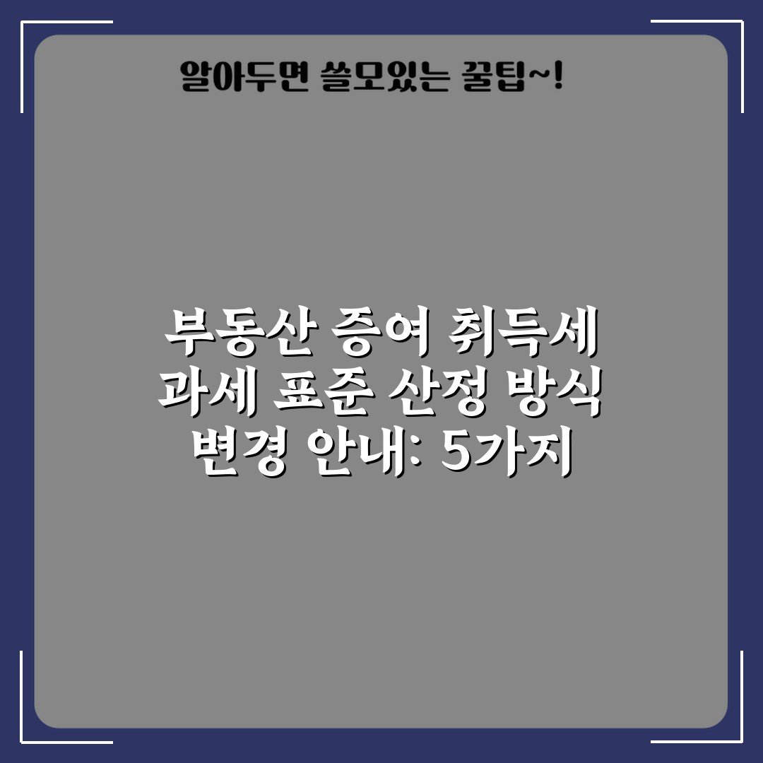 부동산 증여 취득세 과세 표준 산정 방식이 변경되었습니다. 5가지 주요 포인트를 통해 최신 정보를 확인하고, 세금 절감 방안을 알아보세요!