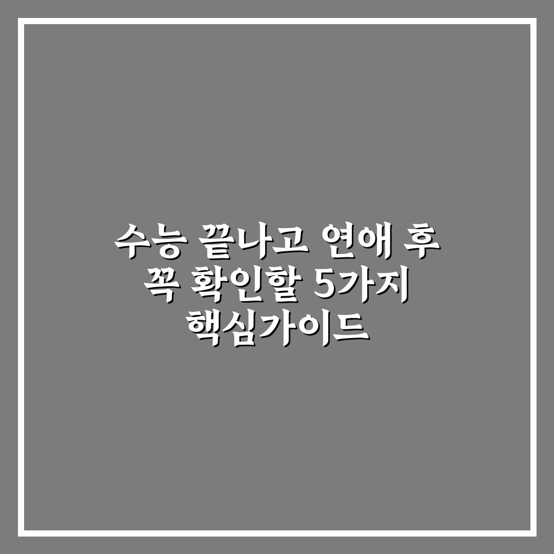 수능 끝나고 연애 후 꼭 확인할 5가지 핵심가이드 2026년 04월 16일 작성자: 인팁 수능 끝나고 연애를 시작할 때 꼭 점검해야 할 핵심 가이드를 통해 건강한 관계를 유지하는 방법을 알아보세요.