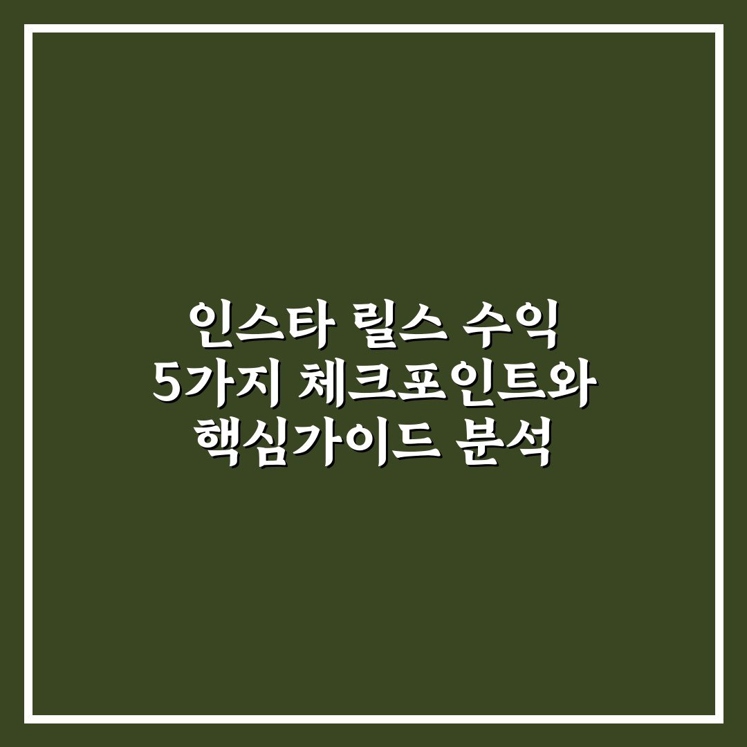 인스타 릴스 수익 5가지 체크포인트와 핵심가이드 분석 2026년 04월 18일 작성자: 인팁 인스타 릴스 수익을 높이는 5가지 핵심 체크포인트와 전략을 통해 효과적인 수익 창출 방법을 쉽게 이해할 수 있습니다