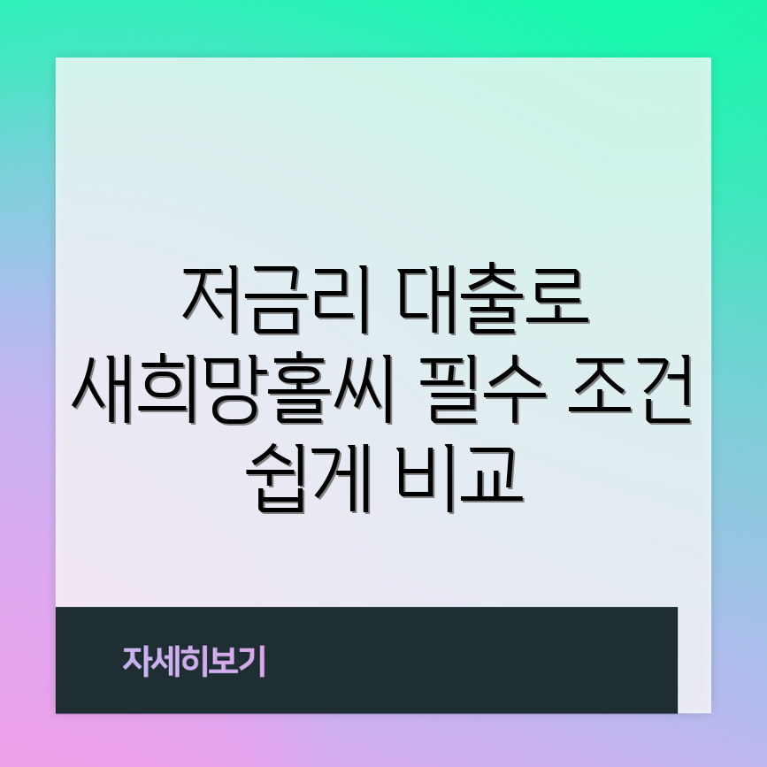 저금리 대출 찾기 완벽 가이드: 새희망홀씨대출 신청 조건 비교