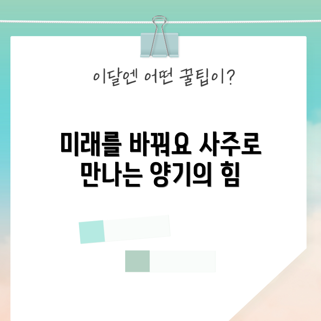 과거와 미래의 조화 사주 양기 분석은 우리의 과거 경험과 미래 가능성을 연결하는 중요한 도구입니다. 이를 통해 우리는 현재의 선택이 어떻게 미래를 형성할 수 있는지를 이해할 수 있습니다. 사주 양기 분석으로 미래를 바꾸세요란 말처럼, 과거의 패턴을 분석해 변화의 흐름을 파악하고, 이를 바탕으로 올바른 결정을 내리는 것이 중요합니다. 주요 특징 사주는 개인의 출생 정보를 바탕으로 한 운세 … 더 읽기
