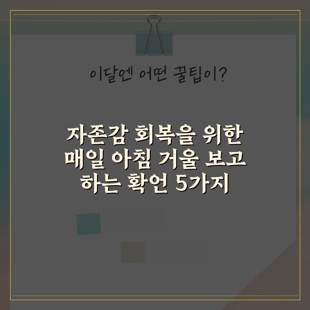 매일 아침 거울 앞에서 자존감을 높이기 위한 5가지 확언을 소개합니다. 긍정적인 자기 대화를 통해 자신감을 회복해보세요!