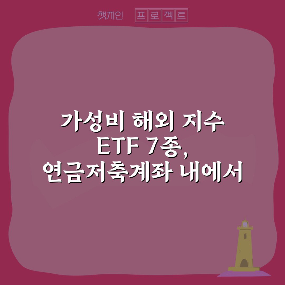 가성비 해외 지수 ETF 7종, 연금저축계좌 내에서 투자하기 좋은 추천 2026년 03월 10일 작성자: 인팁 가성비 좋은 해외 지수 ETF 7종을 소개합니다. 연금저축계좌에서 안정적이고 수익성 높은 투자처를 찾고 계신다면 이 글을 확인해보세요!