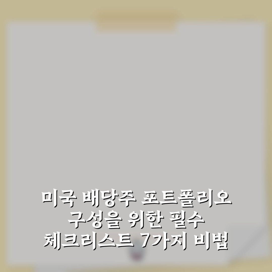 미국 배당주 포트폴리오 구성을 위한 필수 체크리스트 7가지 비법 2026년 03월 10일 작성자: 인팁 미국 배당주 포트폴리오를 구성하기 위한 필수 체크리스트 7가지를 소개합니다. 안정적이고 수익성 높은 투자 전략을 위한 팁을 확인해보세요!