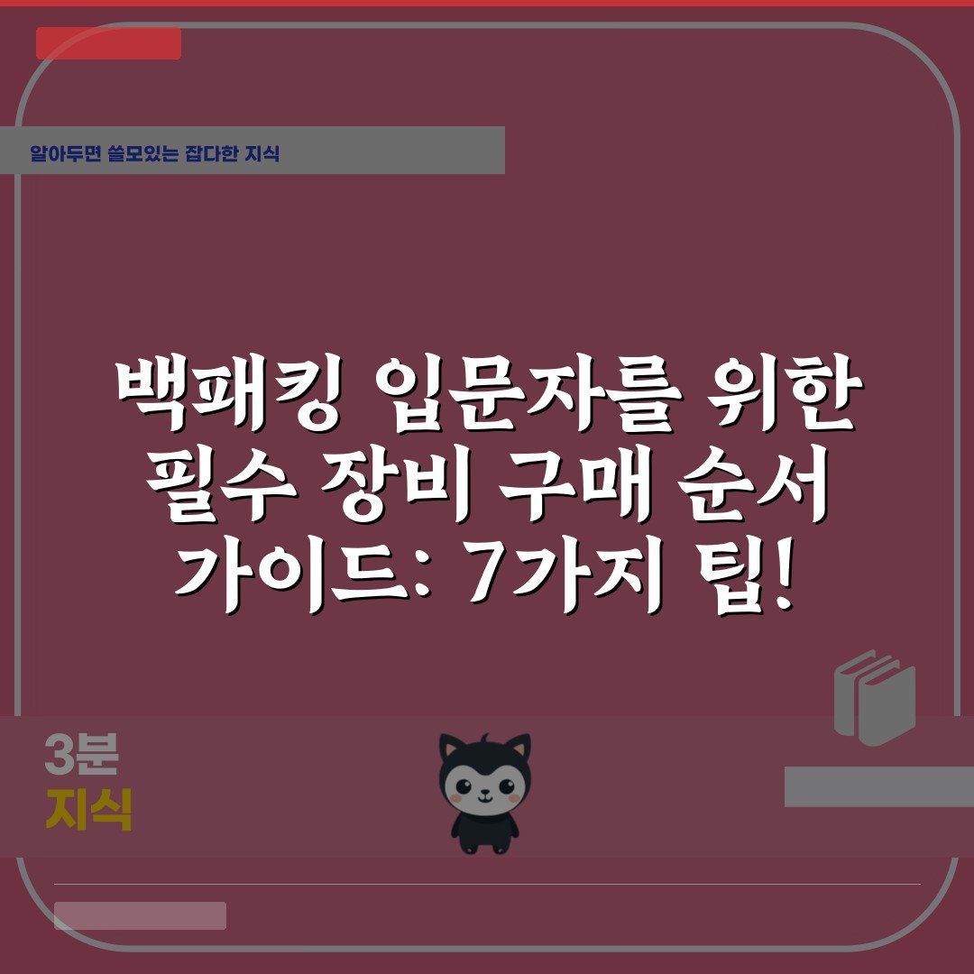 백패킹 입문자를 위한 필수 장비 구매 순서 가이드를 통해 효율적으로 장비를 선택하세요. 7가지 팁으로 완벽한 준비를 시작해보세요!