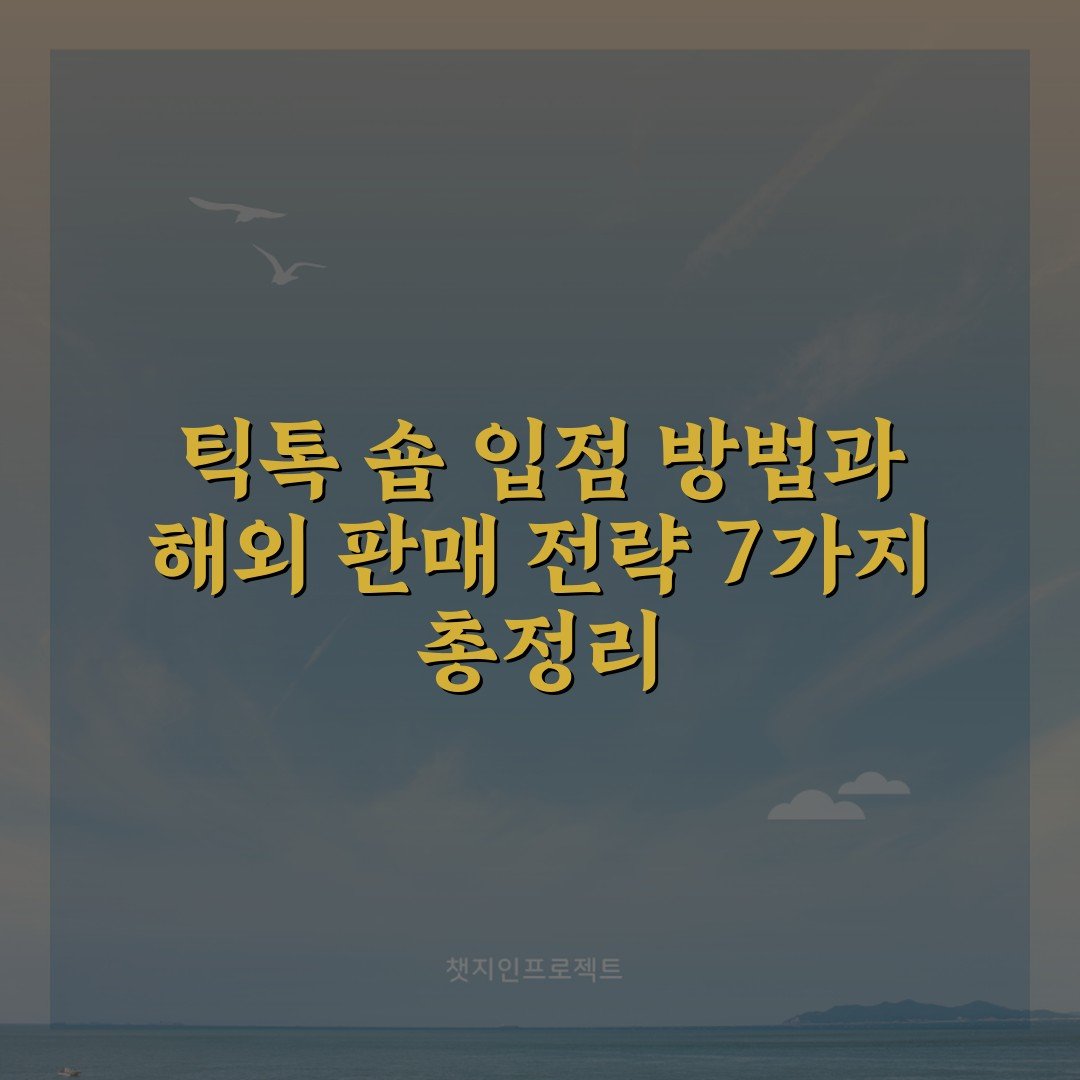 틱톡 숍 입점 방법과 해외 판매 전략 7가지 총정리 2026년 03월 10일 작성자: 인팁 틱톡 숍 입점 방법과 해외 판매 전략 7가지를 총정리했습니다. 효과적인 역직구 판매를 위한 팁을 확인해 보세요!