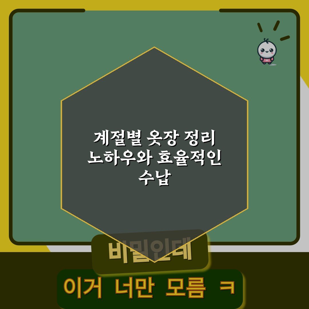 계절별 옷장 정리 노하우와 효율적인 수납 도구 7가지 비법 2026년 03월 10일 작성자: 인팁 계절별 옷장 정리 노하우와 효율적인 수납 도구를 통해 깔끔한 옷장을 유지하는 방법을 알아보세요. 스마트한 수납 비법으로 공간 활용도를 높여보세요!