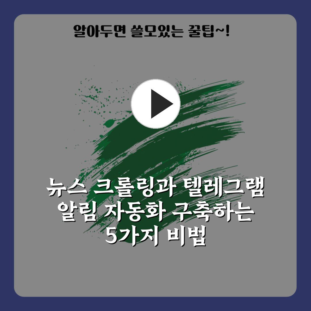 뉴스 크롤링과 텔레그램 알림 자동화 구축하는 5가지 비법 2026년 03월 10일 작성자: 인팁 파이썬으로 뉴스 크롤링과 텔레그램 알림 자동화를 쉽게 구현하는 5가지 비법을 소개합니다. 지금 바로 시작해보세요!